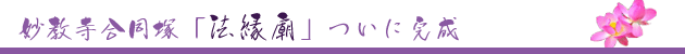 法華経とのご縁・お題目とのご縁そして当山との縁を今生に結び、生生世世に法華経に値遇し仏道を成じて欲しい。そのような願いから“法縁廟”と名付けさせていただきました。もう既に3体のご遺骨を埋葬されております。